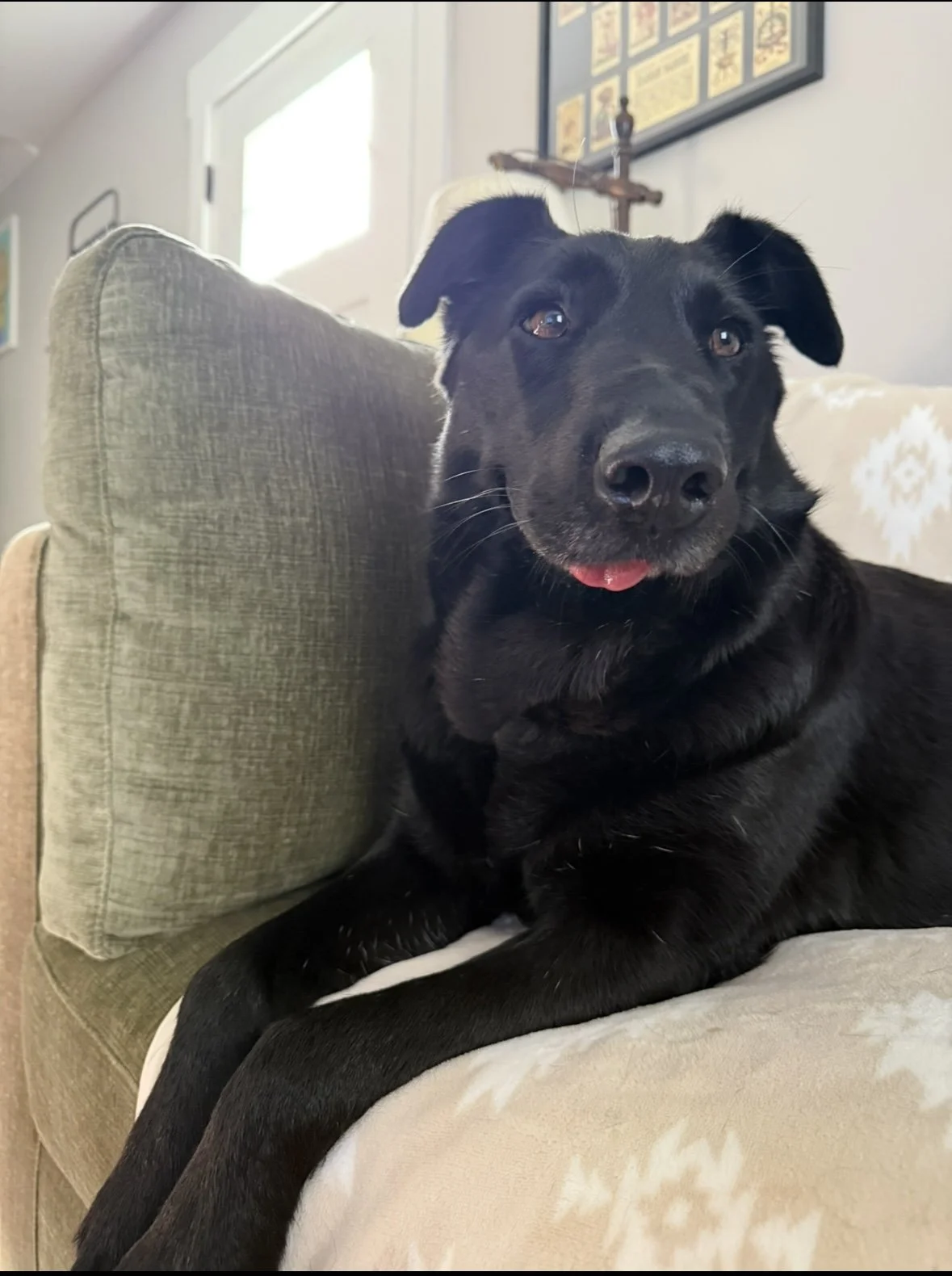 🤍 Home Life: He is a peaceful boy who just wants to be where the people are. A true “velcro dog” in the best way possible!